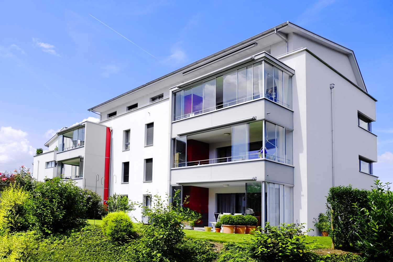 Rechts/Links-Angaben aus Sicht vor dem Hauseingang.